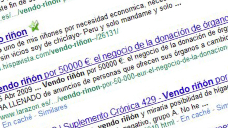 At arbejdsløsheden i Spanien gør mennesker desperate, beviser en enkelt søgning i Google. Skriv 'vendo riñón' (jeg sælger nyre) og du får i hundredvis af tilbud fra mennesker, der sælger organer til højestbydende.