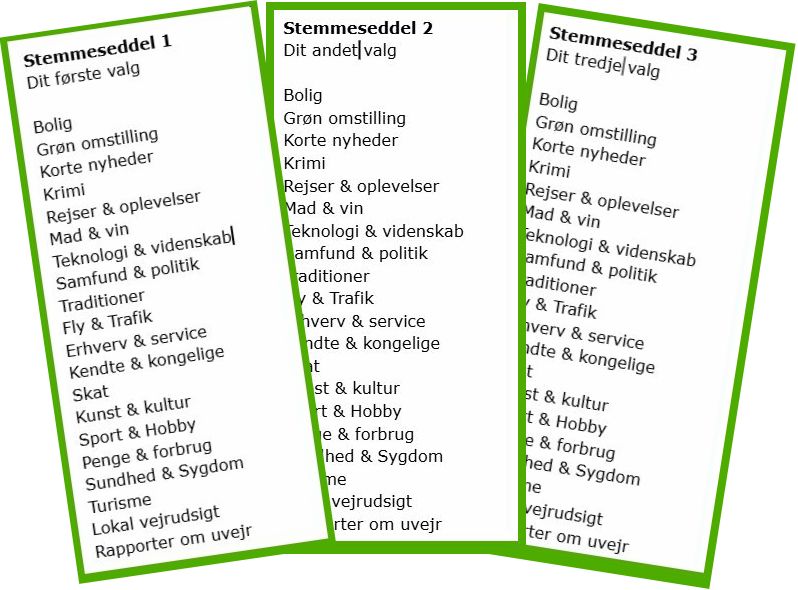 - I dit tredje valg vælger du den kategori, der er tredjevigtigst for dig