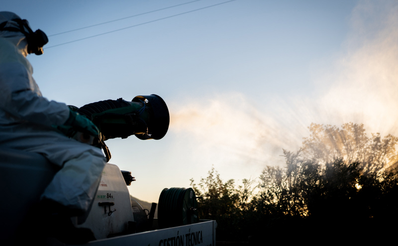 Arbejdet, der udføres af mandskab udstyret med en projektionskanon og langtrækkende sprøjtepistol til sprøjtning af plantebeskyttelsesmidler, er allerede udført i skovparkerne Gibralfaro, Hacienda Clavero, Monte Victoria, Virreinas, La Pelusa og Cerrado de Calderón.