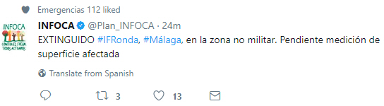 #IFRonda @Plan_INFOCA y @cpbmalaga trabajan en la extinción del incendio originado a las 19.30 horas en la zona militar "Las Navetas" pic.twitter.com/XbqzL5t5qu