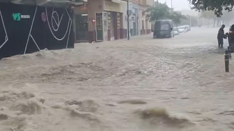 Skoler blev lukket, fly aflyst og veje oversvømmet, mens hundredevis måtte reddes i sikkerhed. Trods massive materielle skader er der heldigvis ikke rapporteret om dødsofre.Også længere sydpå i Murcia gik det helt galt. Mandag eftermiddag så situationen sådan ud på gaderne i Molina De Segura, Murcia, efter at der faldt 46 mm på ganske kort tid, og det fortsatte:
