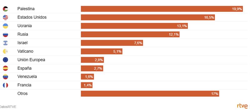 RTVE fremhæver også de store internationale kriser, som har påvirket spansk mentalitet. Krigene i Ukraine og Gaza har fyldt meget i nyhedsfladen, og Spanien har spillet en aktiv rolle i EU-diplomatiet, hvilket har skabt store interne debatter om landets rolle på verdensscenen.