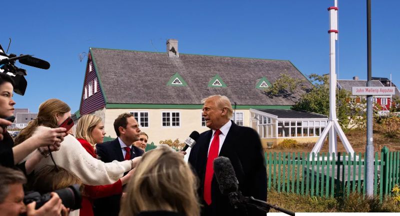 - Vil det sige, at du har opgivet dine planer med at annektere Grønland med militærmagt, spurgte en yngre journalist