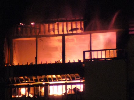 Ilden brød ud i en af de øverste lejligheder i en 13-etagers ejendom på Plaza Villa Castelldefels i Málaga.