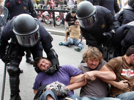 Siden 15. maj har unge overnattet på de vigtigste pladser i større spanske byer - i Barcelona på Plaza Catalunya. Men fredag morgen blev det pludseligt vigtigt, at pladsen blev ryddet for ”farlige og brændbare materialer”. Det var den officielle forklaring, men...