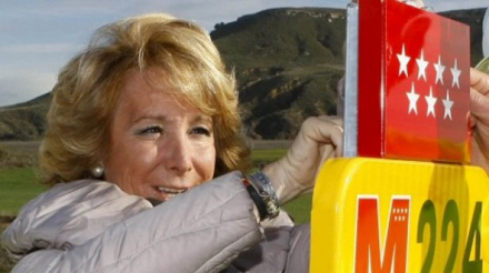 Esperanza Aguirre ved indvielsen af den ny landevejs-strækning i Torres de la Alameda, hvorefter hun fortalte journalisterne, at hun skulle opereres for kræft