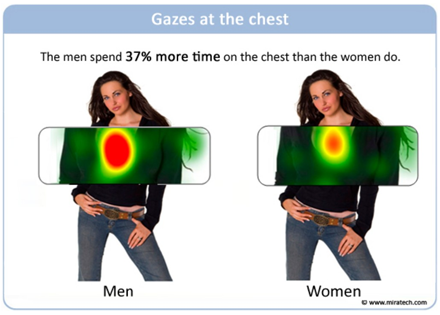 Specialister fra universiteter og analysevirksomheder fra flere lande er gået sammen for at undersøge, hvad mænd og kvinder ser på. Ved hjælp af det avancerede computerprogram eyetracking, der registrerer testpersonernes øjebevægelser, kunne eksperterne se, hvad der havde størst interesse – og ikke mindst: hvor længe, der blev kigget.