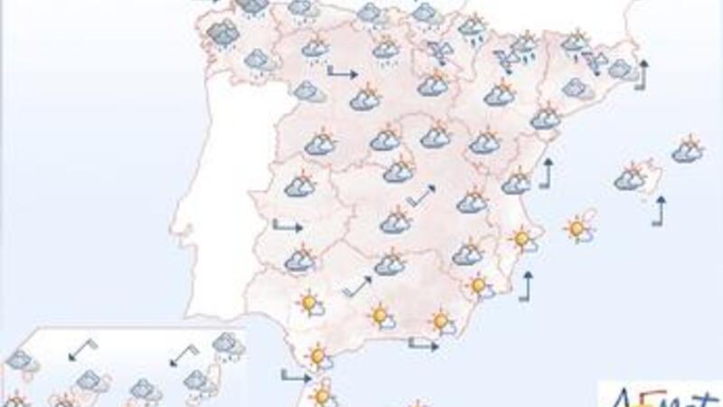 I de sydlige egne mest solrigt. I Málaga Provinsen op til 29 grader, i nat klart og ned til 19 grader.