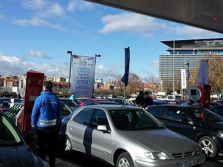 En reklame om gratis benzin fra et teleselskab fik tirsdag en tankstation ved Campo de Naciones i Madrid på randen af et totalt kollaps.
