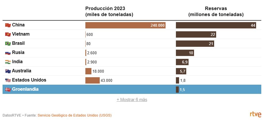 En stor del af RTVE's artikel er dedikeret til den økonomiske og teknologiske krig. Det handler ikke kun om olie og gas, men om de sjældne jordarter, som Grønlands undergrund er rig på.