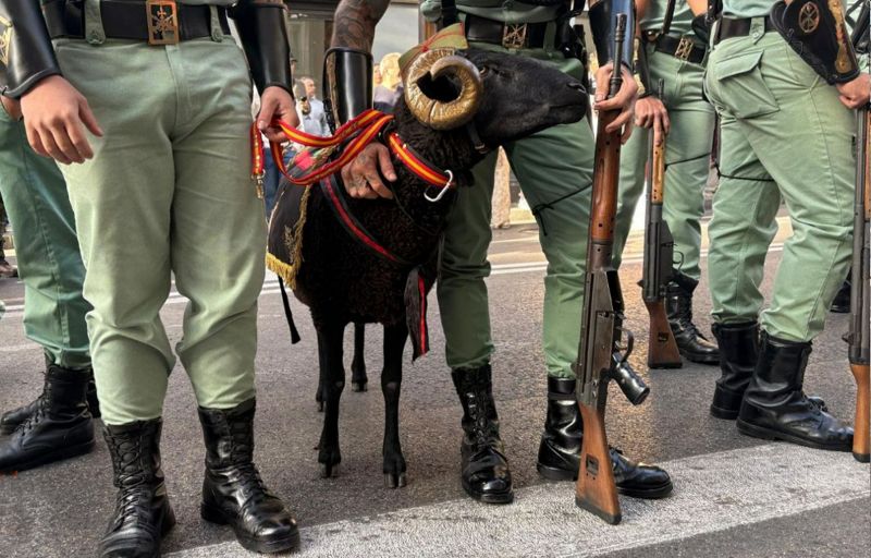 Men uden tvivl var et af de mest ventede øjeblikke paraden med personel fra legionen 'Gran Capitán' 1., som marcherede med 160 skridt i minuttet sammen med deres maskot. I år ledsagedes de af Baraka, et tre år gammelt han-får, hvis navn på arabisk betyder 'held og lykke'.