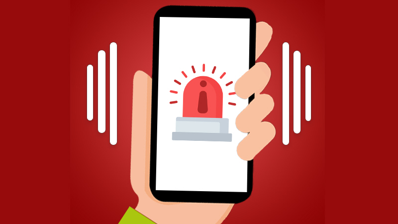 Den massive nødalarm vil aktivere en høj lyd på telefonen kombineret med en advarselstekst.