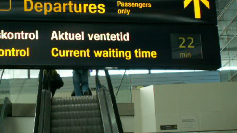 Alle passagerer skal igennem sikkerhedskontrollen på under 20 minutter ifølge lufthavnens kvalitetskrav. 85 procent skal igennem på under fem minutter. Sikkerhedschefen indrømmer, at kvalitetskravene nok ikke bliver overholdt i dag.