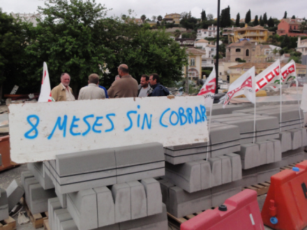 Vrede ansatte hos entreprenørselskabet Profasán protesterer mod manglende lønudbetalinger i forbindelse med vejarbejdet på Mijas-vejen.