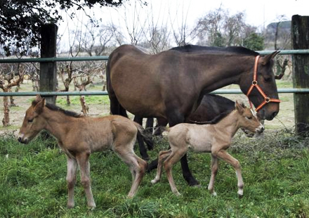 Tvillingernes far er også en spansk fuldblods. Den kastanje-farvede hingst kommer fra en nærliggende gård.