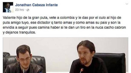 ”Skiderik”, ”Ludersøn” og ”han skulle skydes i nakken” skrev Jonathan Cabeza fra det konsevative regeringsparti, Partido Popular, i Paredes de Nava (Palencia) i det nordlige Spanien på sin Facebook-side.