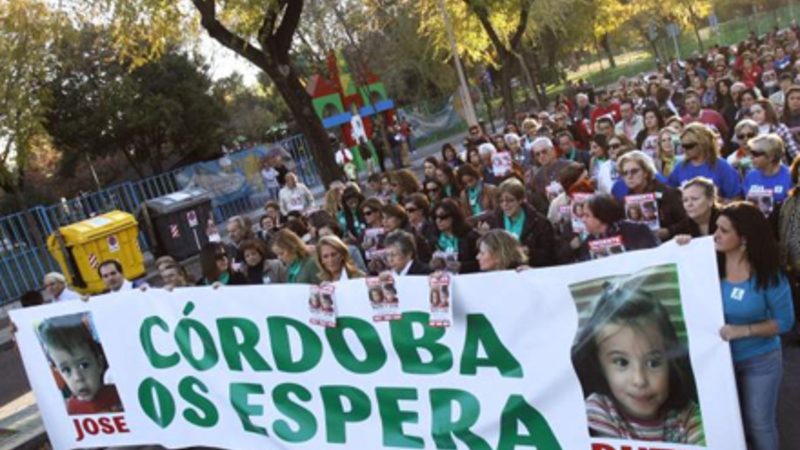 Børnenes tante, Esther Chaves, der også er talskvinde for børnenes mor, deltog sammen med 500 andre i optoget, der endte på Cruz Conde-legepladsen i Córdoba Centrum, hvor børnene oprindeligt mentes at være forsvundet fra.