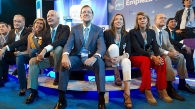 Blandt deltagerne på mødet, der finder sted i Kongres-hallen i Málaga, er partiets leder, Mariano Rajoy, og forhenværende ministerpræsident José Maria Aznar.