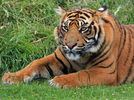 Borgerne talte sandt. Tigeren lå roligt ved siden af en gadegøgler.