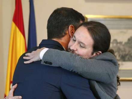 Mens Pedro Sánchez under den foregående samling i Kongressen intet ville have med Pablo Iglesias - leder af Unidos Podemos - at gøre, så gik der kun to dage efter valget den 10. november, før de faldt i den store omfavnelse.