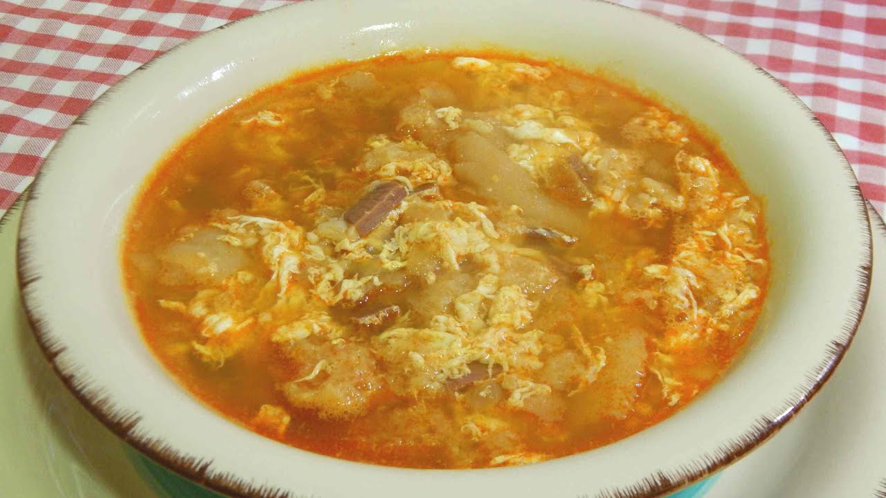 Begynd med at skrælle og skære hvidløgsfeddene i skiver. Sauter dem i olivenolie, og når de er ristede, tages de af varmen og tilsættes en teskefuld paprika. I nogle versioner af denne suppe er der ikke tilsat paprika.