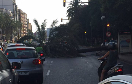 Palme på ikke mindre end otte meter styrtede i går ned over over hovedgaden La Gran Vía de Germanías i Valencia. Hændelsen skete lidt efter klokken 19 på et tidspunkt, da der var en del mennesker og biler i gaden.