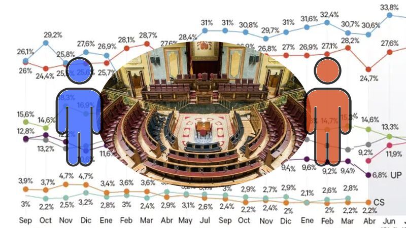 PP falder, og Vox stagnerer, mens PSOE og Sumar vokser, selvom sidstnævnte stadig er langt fra en sikker sejr.