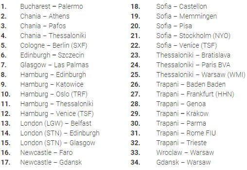 Kun to skandinaviske ruter bliver påvirket nemlig ruterne fra Hamborg til Oslo og fra Sofia til Stockholm-Skavsta.