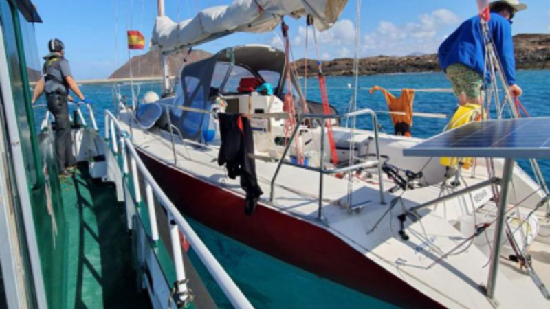 De har nemlig ikke kunnet finde ud af at få den særlige tilladelse, det i dag kræver at sejle ind i Corralejos Havn, og efter den lange ventetid havde de pludselig ikke mere drikkevand. Drengene anmodede om hjælp hurtigst muligt via 062.