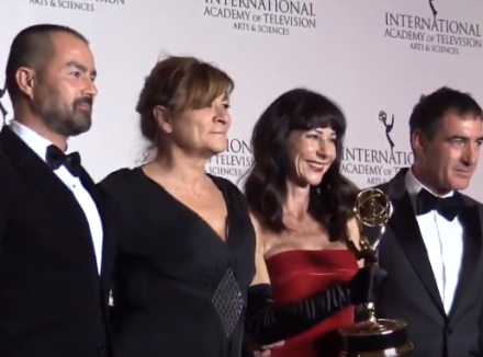 VIDEO: Både danske og spanske tv-folk kunne i nat gå glade i seng efter at have scoret branchens største cadeau. Og der blev endda plads til lidt dansk humor i takketalen.