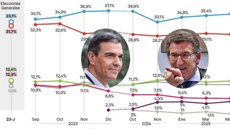 I modsætning til de gode nyheder, som barometeret viser for højrefløjen, er venstrefløjen stadig dybt begravet i sin egen lidelseshistorie og ville være langt fra at kunne regere, hvis der var valg i morgen. Pedro Sánchez' PSOE er ganske vist stabilt i mange måneder, men har 3 procentpoint i meningsmålingerne i forhold til det sidste parlamentsvalg og kan kun holde fast i 74 procent af sine vælgere fra 2023. Men det største problem for det progressive blok ligger ikke her, men i splittelsen af partierne til venstre i to formationer, Sumar og Podemos, som, hvis de stiller op hver for sig til valget, vil opnå et katastrofalt resultat, der vil ødelægge Sánchez' muligheder for at fortsætte i Moncloa.