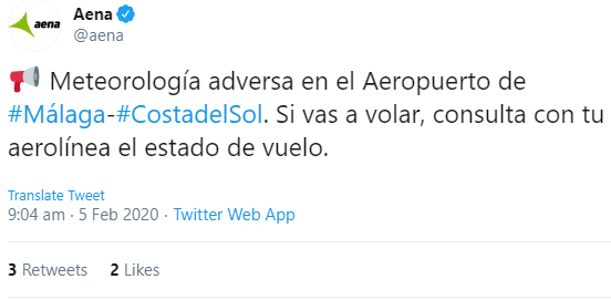 Landets luftfartsmyndighed råder rejsende til og fra Málaga til at kontakte deres flyselskab for nyt