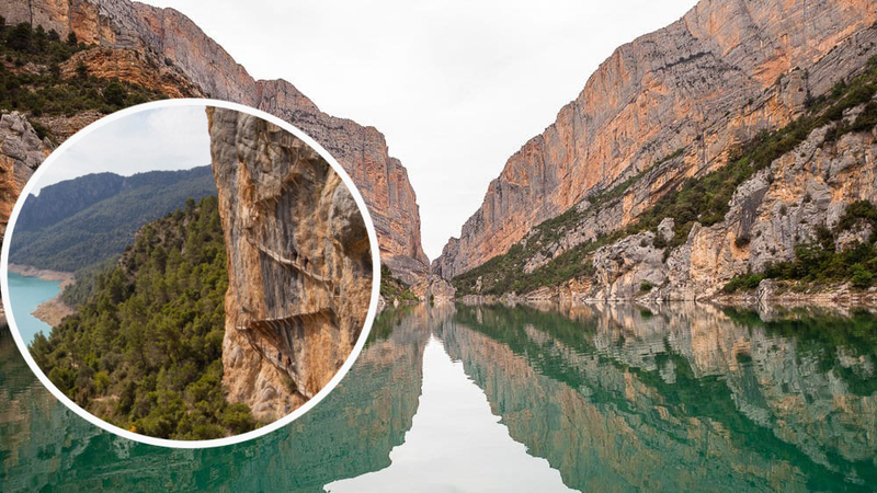 VIDEO: Driv lydløst på spejlblankt vand mellem høje klippesider i Catalonien - eller gå på bjergvæggen højt oppe.