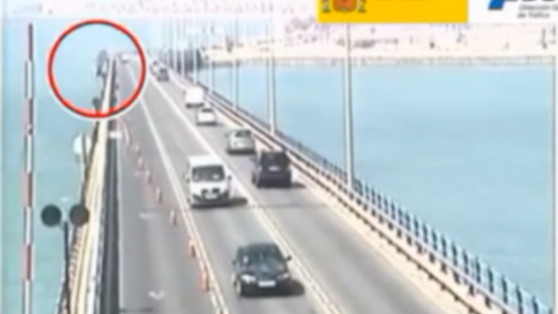 Chaufføren kunne dog ikke genvinde kontrollen efter den pludselige manøvre, hvilket sendte ham direkte ind i siden af broen.