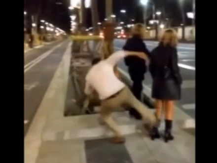 Sjov aften i byen endte i vold mod en tilfældig kvinde på gaden. Kammeraten filmede overfaldet og oploadede den på de sociale netværk. Videoen blev delt med lynets hast, og han blev hurtigt identificeret. Han er nu anklaget for chikane og legemsbeskadigelse.