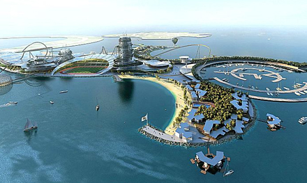 The Island Resort er en halvmåneformet, kunstig ø på 12 hektar, som vil ligge åbent ud til havet. Øen vil blandt andet indeholde en temapark med rutschebane, en vandpark, et fem-stjernet hotel med 450 værelser, et luksus boligområde med 400 lejligheder og 48 villaer. Derudover vil der blive opført et Real Madrid museum, et butikscenter, en lystbådehavn med 10.000 pladser, en yacht-club, swimming-pool, fitness-centre og sportsklinikker.