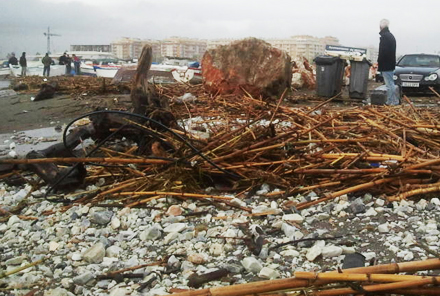 Strandene i Marbella er, fra branden i september, blevet dækket til af grene og bambusrør, som er skyllet ud gennem floderne i Middelhavet.