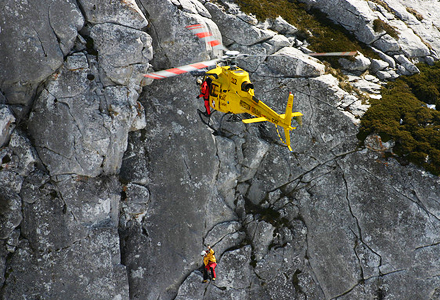 Uerfarenhed eller hændeligt uheld i bjergene kan ende med en kompliceret redningsaktion, som kun en helikopter kan klare.