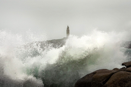 En kæmpe bølge smadrer ind over land i ved Coruña